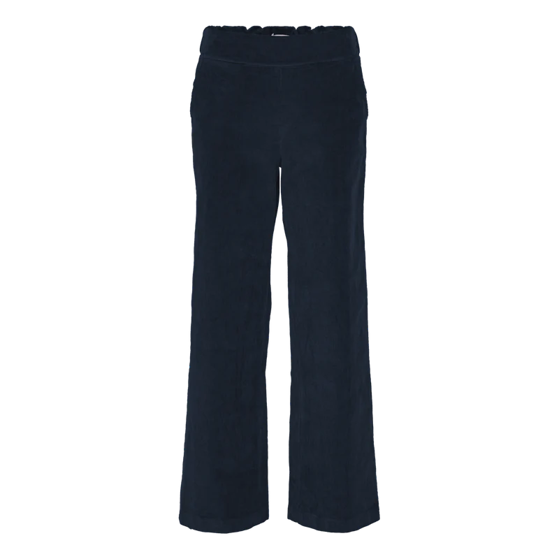 Lækre fløjlsbukser med lange ben, sidelommer. De er designet med en elastisk linning bagpå, som sikrer en behagelig pasform.