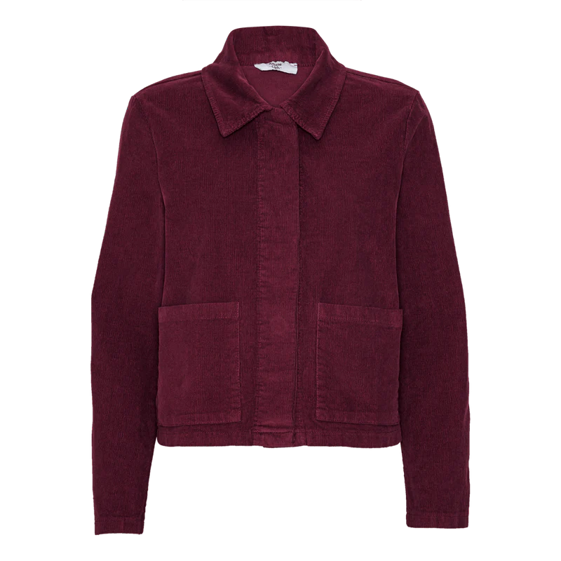 Lækker fløjlsjakke fra Amaze Cph med klassisk krave, skjult knaplukning langs fronten og lommer foran.