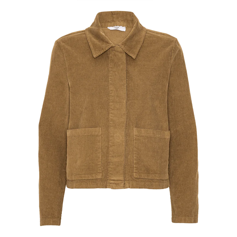 Lækker fløjlsjakke fra Amaze Cph med klassisk krave, skjult knaplukning langs fronten og lommer foran.
