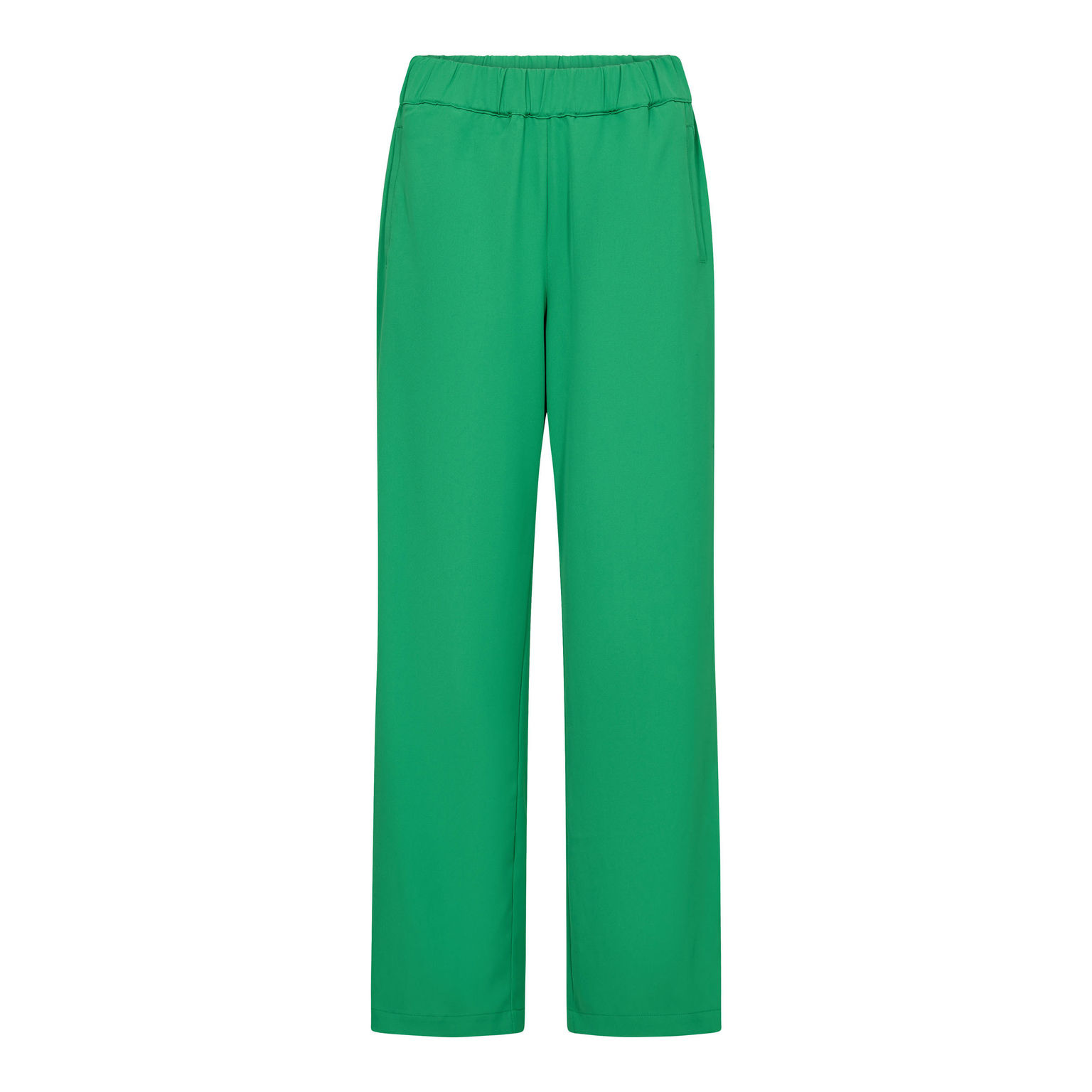 Superseje bukser fra Co’Couture i en iøjnefaldende græsgrøn farve. Siderne har striber, som kan skjules med lynlås – en sjov og fleksibel detalje, der giver bukserne et unikt twist. Elastisk i taljen.