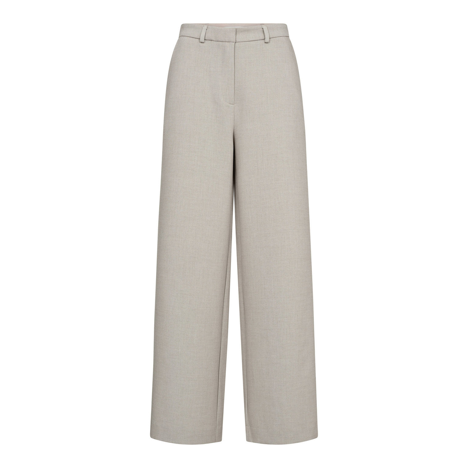 Stilfulde bukser fra Co’Couture i en lys beige farve med elegante lodrette striber. Den løse pasform giver et moderne og behageligt look, der både er elegant og let at style. Bukserne har bæltestropper og lukkes foran med knap og lynlås.Elastik i lænden. Smuk lang model.