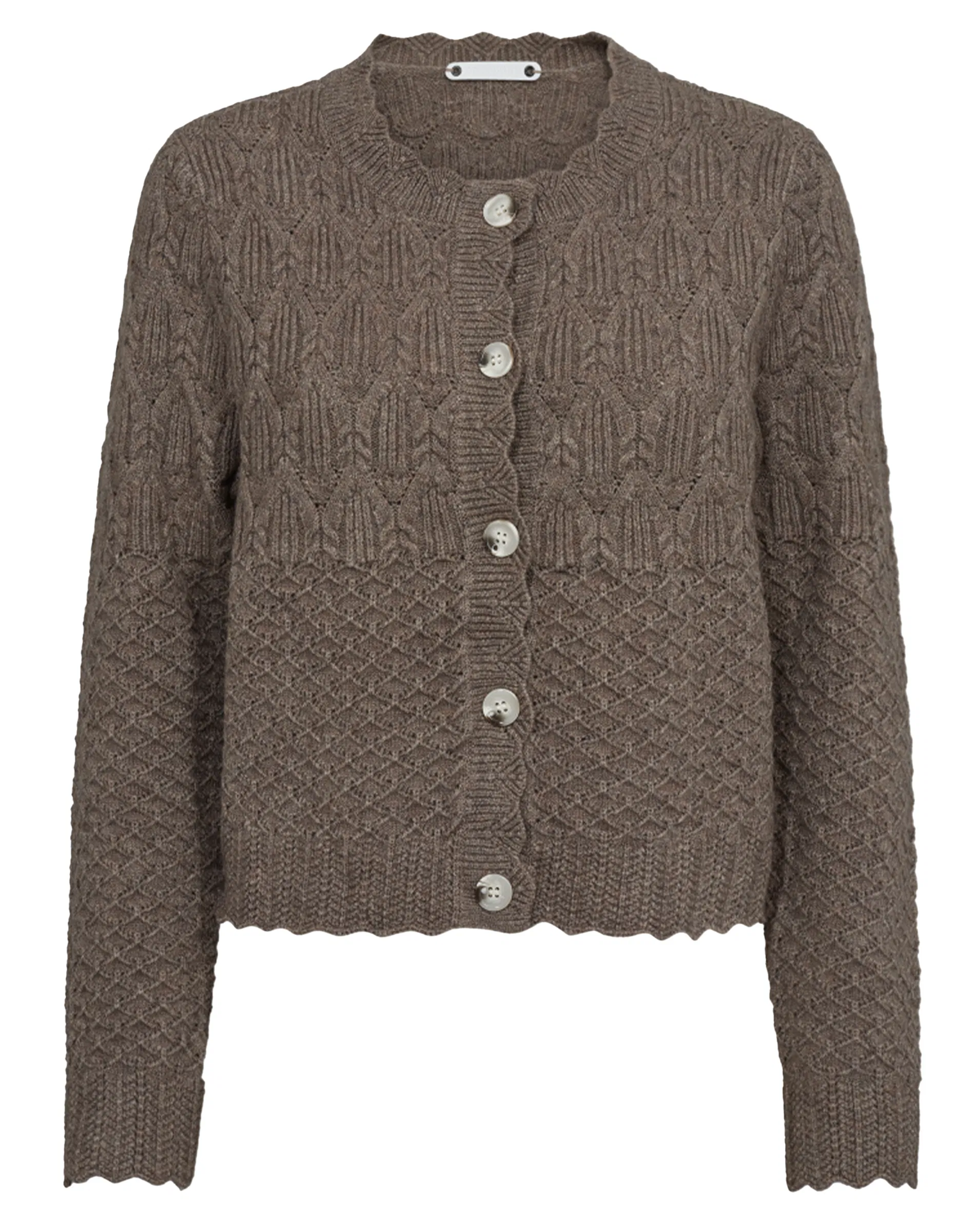 Smuk og feminin strik cardigan fra Co' Couture i brun. Cardiganen har de fineste detaljer og strik mønster.
