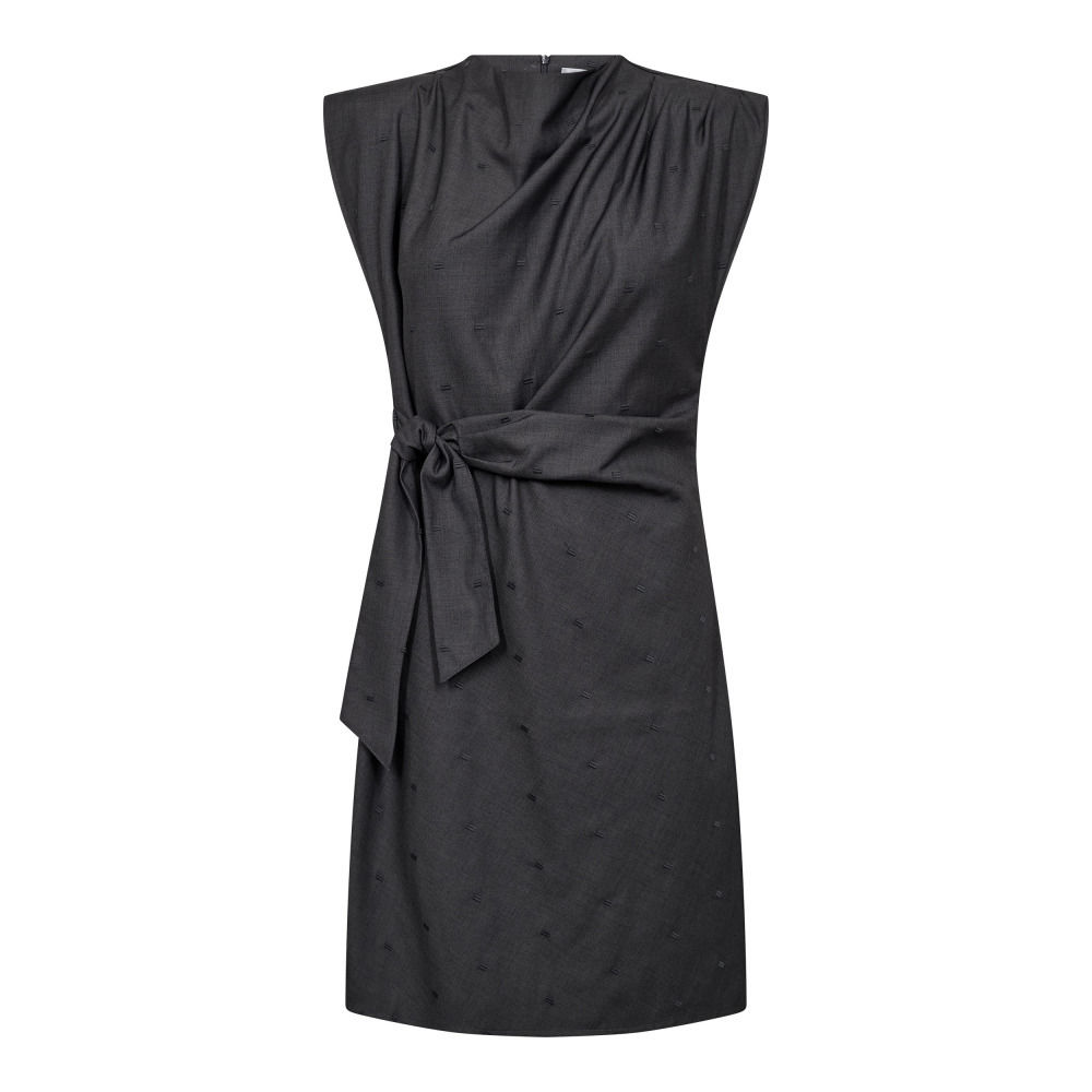 Elegant kjole med små, firkantede, broderede detaljer fra Co' Couture. Kjolen har desuden en flot vandfaldsudskæring samt et bredt bindebælte i taljen.