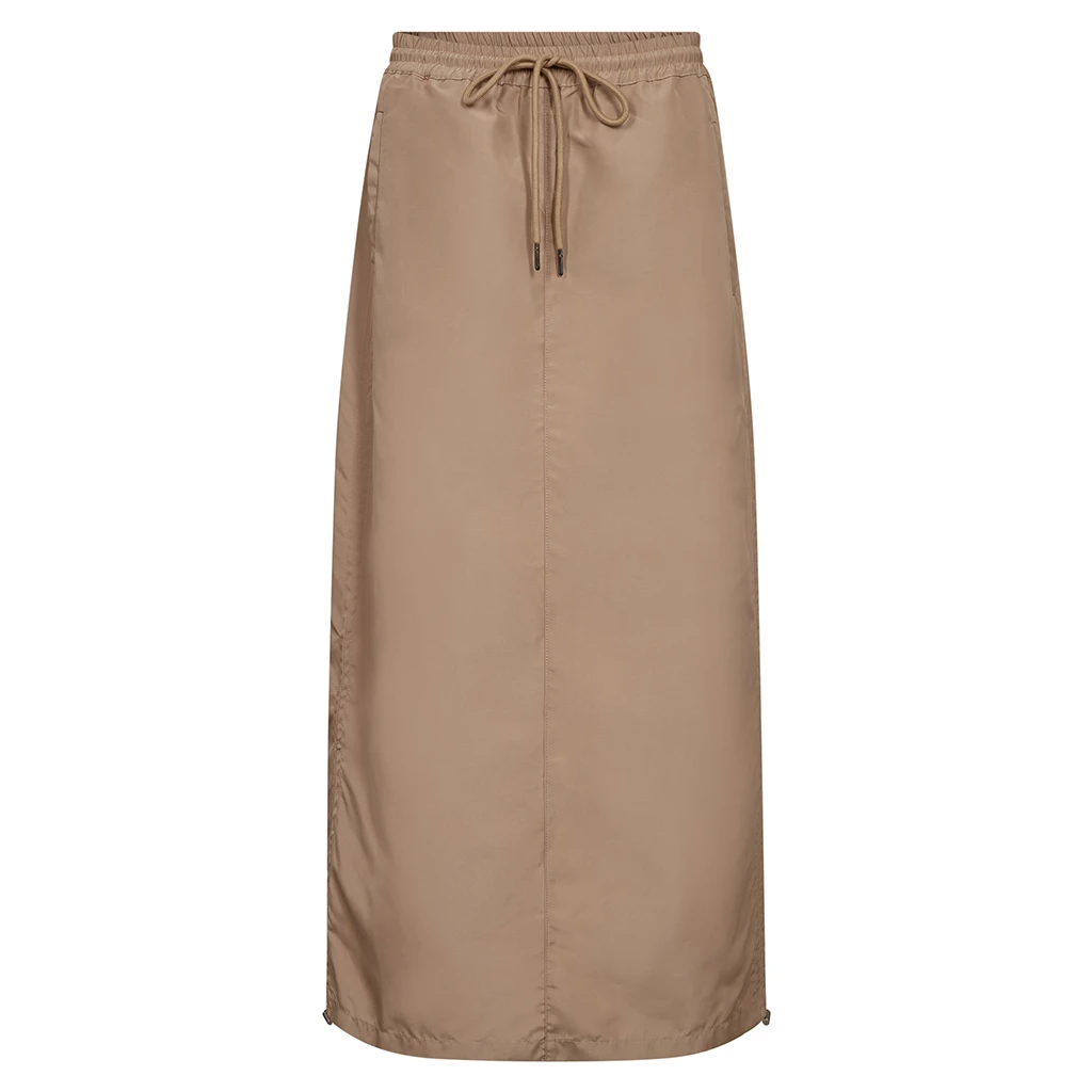 Co’Couture nederdel i sand med en glat og elegant overflade. Modellen har et klassisk look og elastisk talje, som sikrer en behagelig pasform. Den neutrale farve gør den let at style og anvendelig til både hverdag og særlige lejligheder.