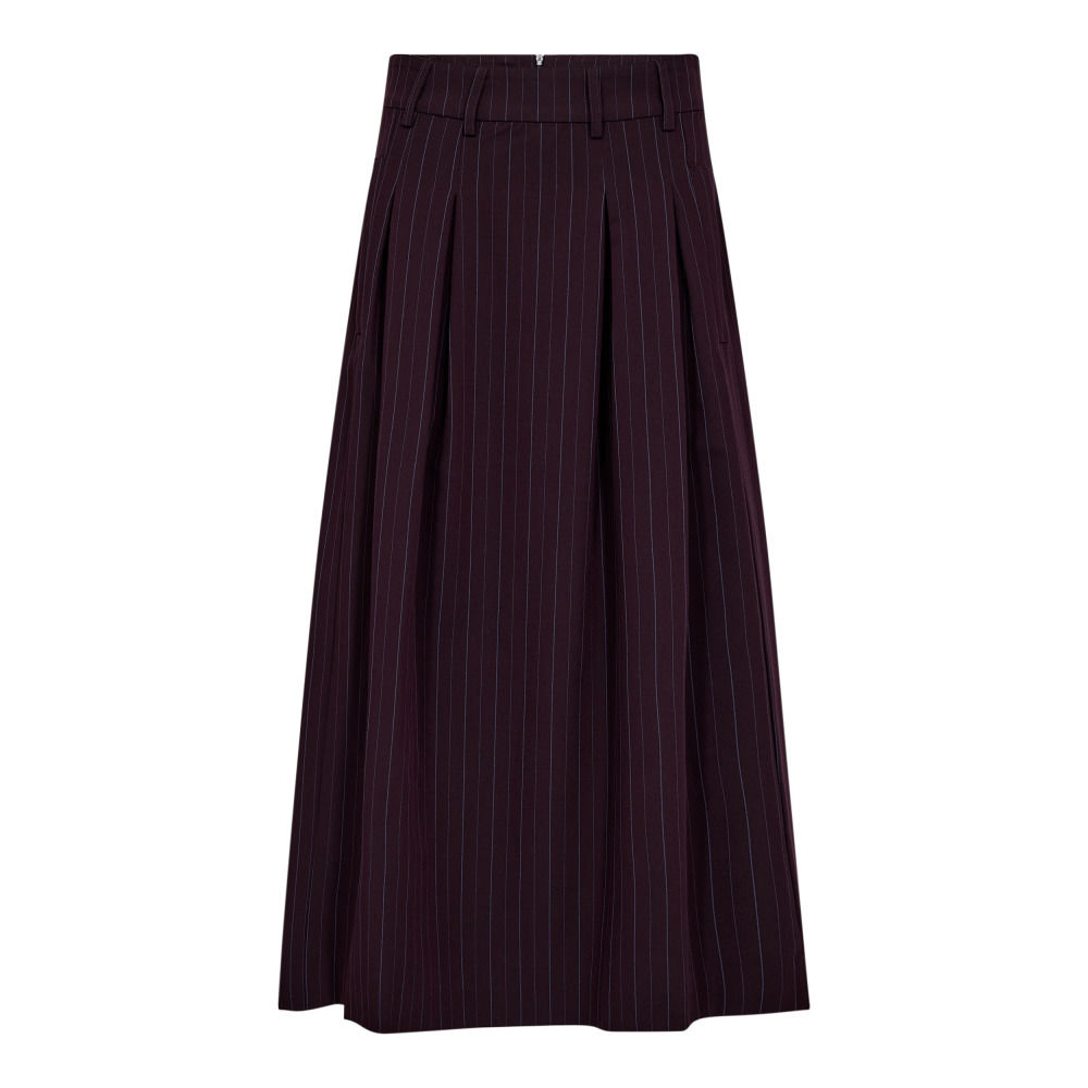 Flot lang stribet nederdel fra Co' Couture med skrålommer i begge sider. Den har bæltestropper i taljen og lynlås bagpå. Foran har den de fineste læg detaljer som giver den et smuk fyldigt fald ned over benene.