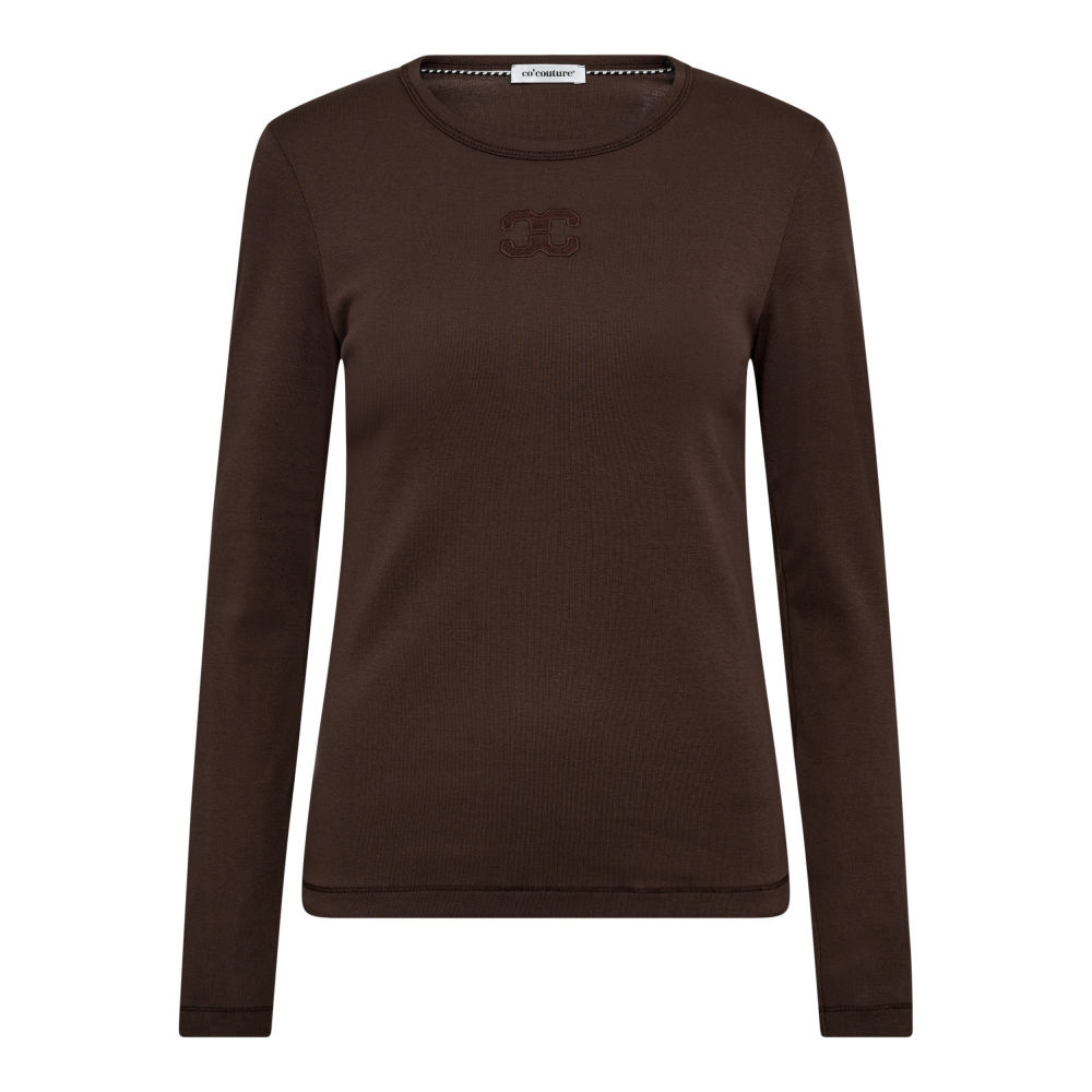 Lækker basic t-shirt fra Co' Couture i brun. Granny Logo Tee har rund hals og lange ærmer samt en forholdsvis tætsiddende pasform.