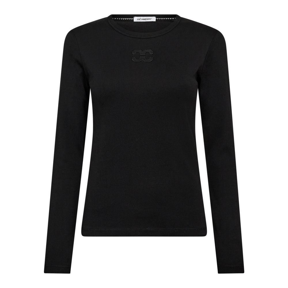 Lækker basic T-shirt fra Co' Couture i sort. Granny Logo Tee har rund hals og lange ærmer samt en forholdsvis tætsiddende pasform.