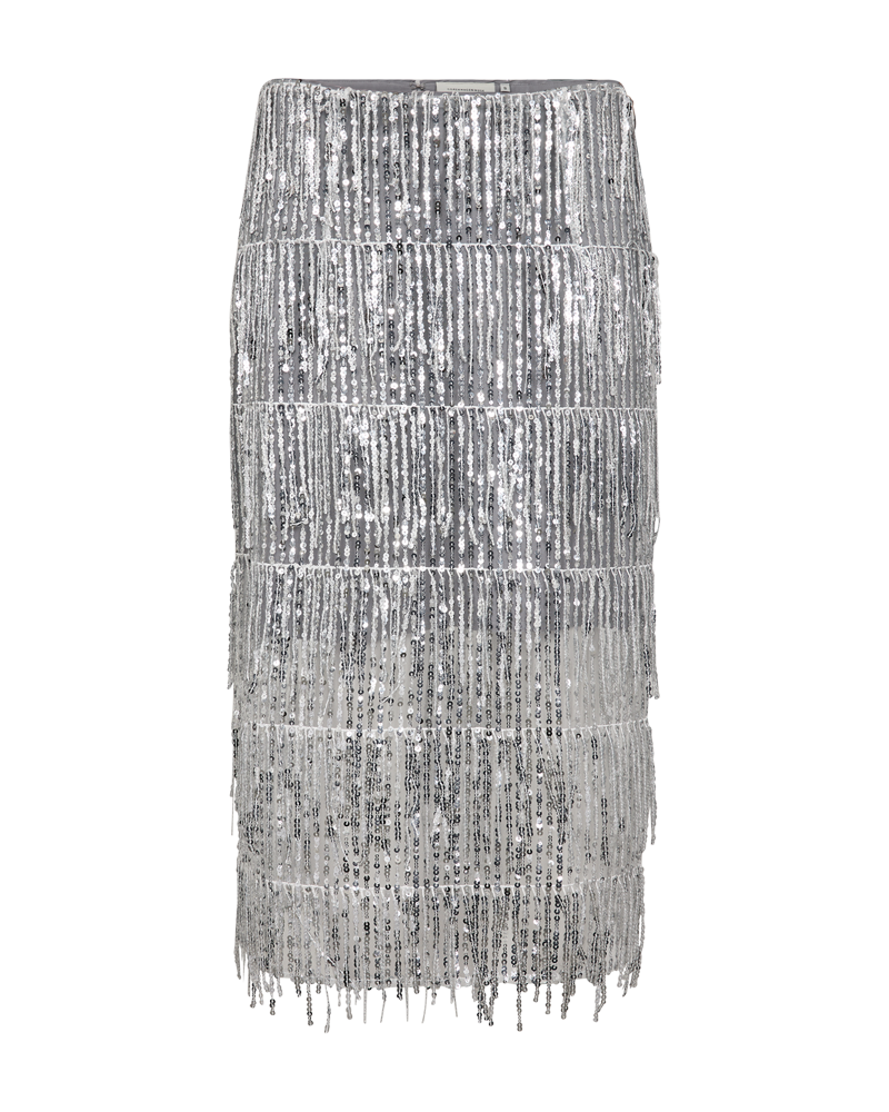 Elegant lang pencilskirt fra CPH Muse i en eksklusiv mesh-kvalitet prydet med pailletter, der giver en fin frynseeffekt i bunden. Derudover har nederdelen fuld foring samt skjult hægte- og lynlåslukning bagpå.
