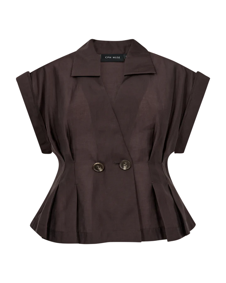 En elegant, ærmeløs skjorte, der giver dit outfit et moderne og stilrent udtryk. Den åbne V-udskæring med krave samt knaplukningen tilfører et klassisk look. Den lette vidde i bunden og de fine læg i taljen skaber en flot, feminin silhuet. Perfekt over en top eller alene på varme dage, når du vil være både afslappet og velklædt. Også folt under en blazer. Kig ind i Stenløse eller læg den i kurven med det samme.