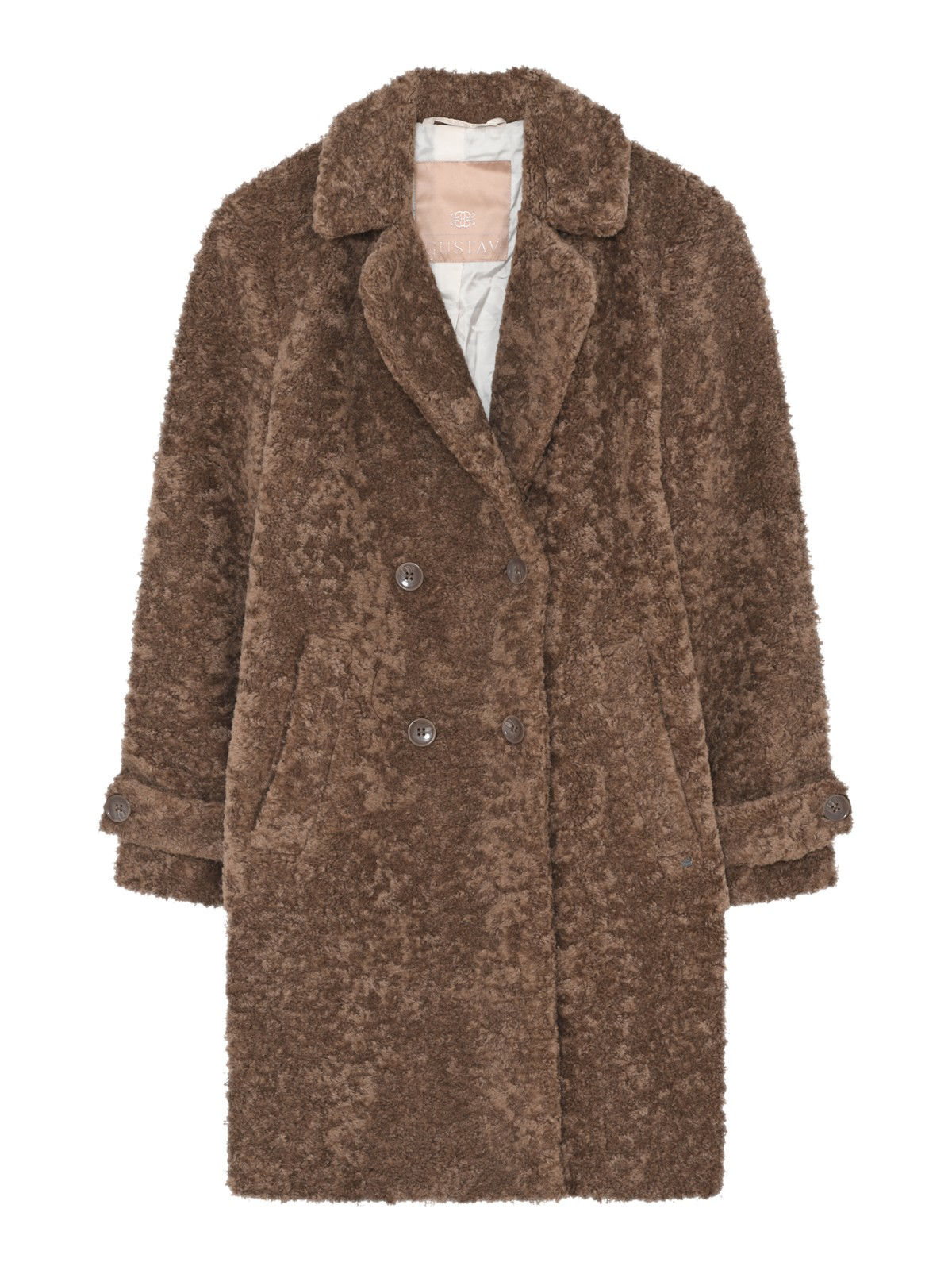 Flot og lækker teddy frakke fra Gustav i et klassisk snit med stort revers, skrå stiklommer og knaplukning.