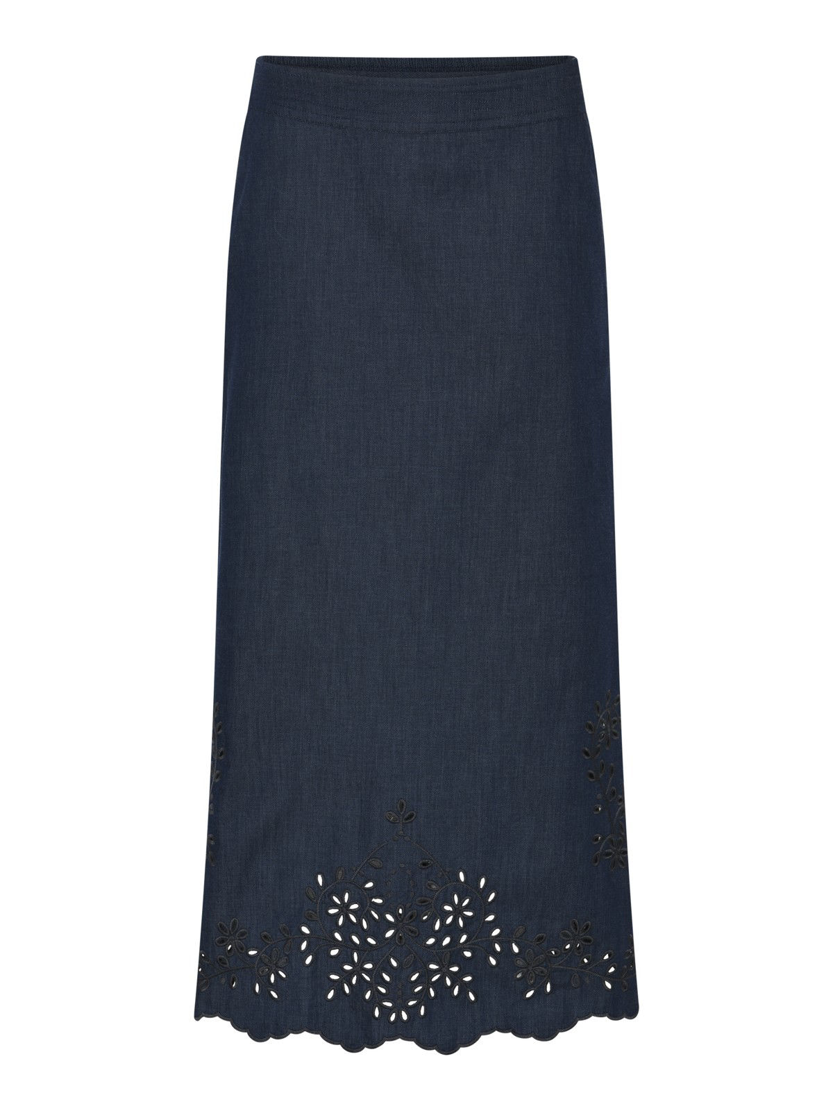 Blød og lækker denim nederdel fra Gustav med broderi og slidser.