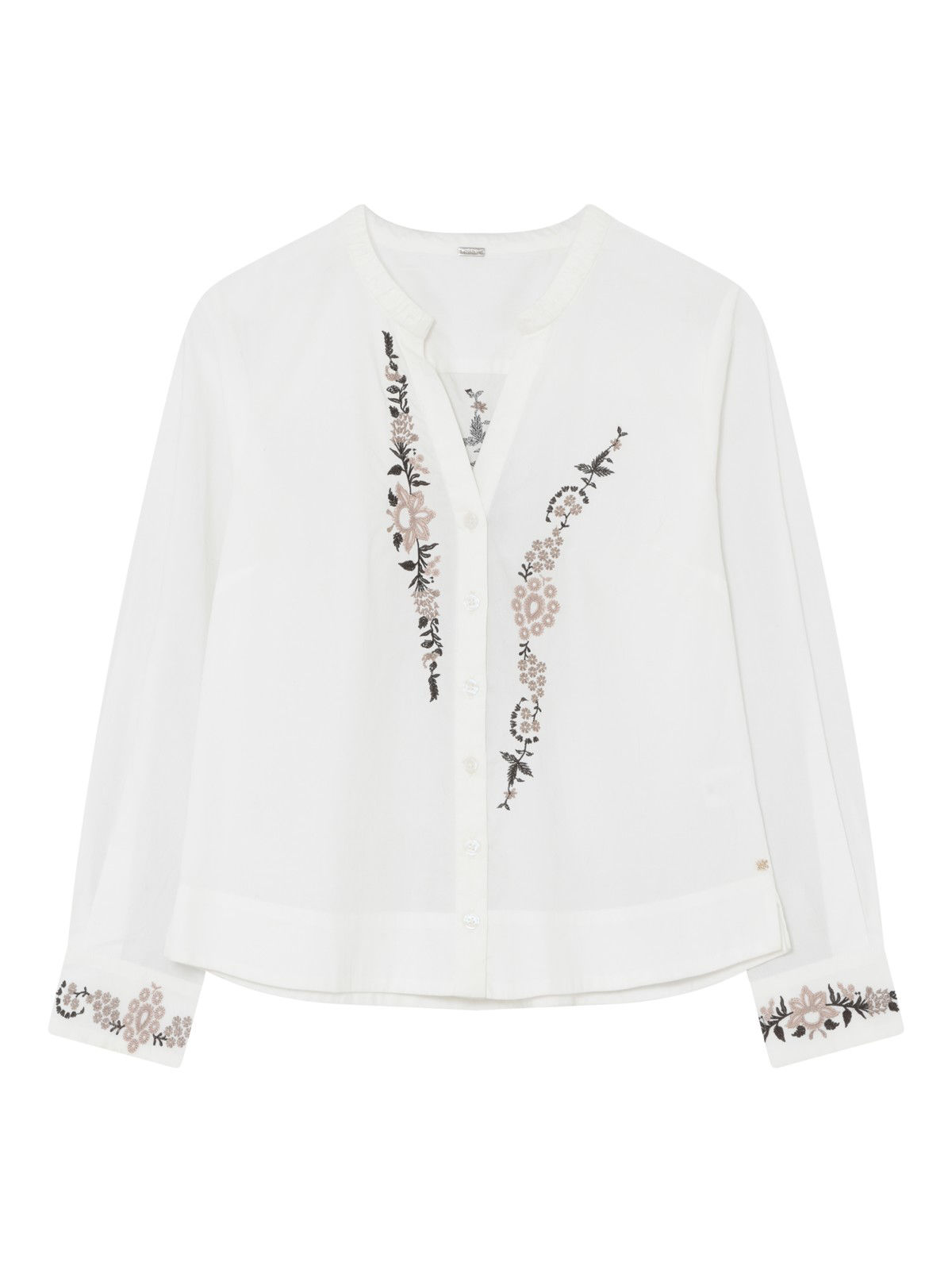 Flot skjorte fra Gustav med lange ærmer, det fineste broderi samt en let silhuet. Skjorten har en rund hals der udformes med v-udskæring og knaplukning.