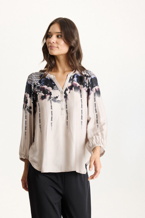 Elegant skjortebluse fra In Front med lange ærmer, krave i halsen og knaplukning langs fronten. Blusen har også et smukt print og den lækreste kvalitet.