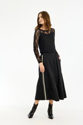 Cool nederdel fra In Front med elastikkant i taljen. Nederdelen har lommer og smarte striber langs siderne.