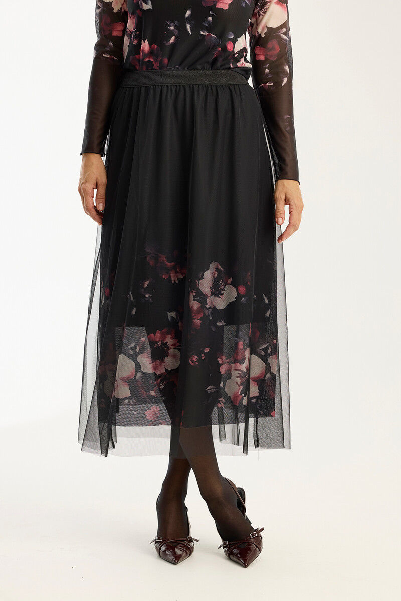 Fin meshnederdel fra In Front i midi-længde med det flotteste blomsterprint og elastik i taljen. Nederdelen matcher og giver et yndigt look med In Front Bluse Rose