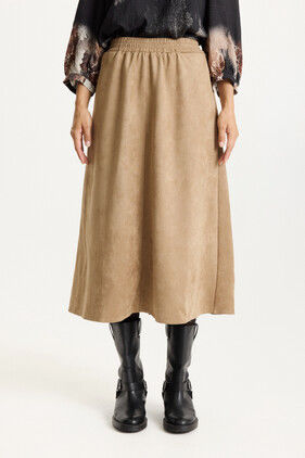 Flot vegan ruskinds nederdel fra In Front med elastik i taljen. Nederdelen har lommer og er ankellang.