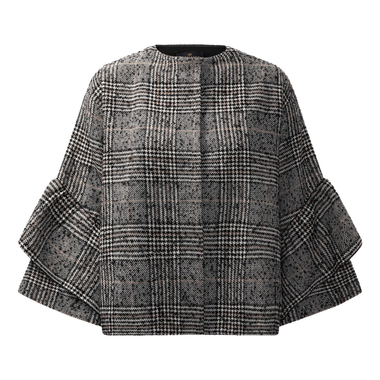 Lækker og stilfuld Jakke. Knapperne ved halsudskæringen gør, at du kan afsløre din yndlingsbluse under eller fastgøre og bære jakken som en løs top. Peplum-ærmer med flæser i flere lag smigrer armene og tilføjer et ekstra strejf af mode til Spencer-jakken.