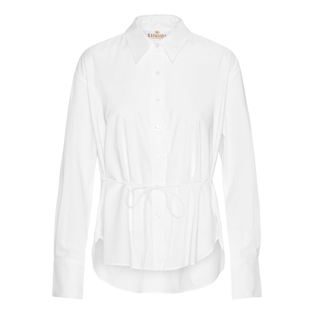 Klassisk, overzised skjorte fra Karmamia med bæltebånd, en elegant krave samt slidser i siderne.