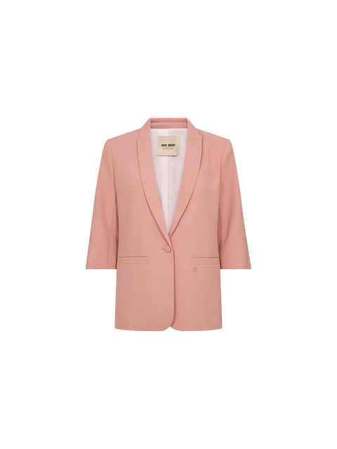 Cool skræddersyet blazer i den skønneste farve fra Mos Mosh. Blazeren har 3/4-ærmer, en klassisk krave samt den flotteste lukning med en enkelt knap foran. Fuldend looket med vores flotte Mos Mosh Bukser Leya Miley.