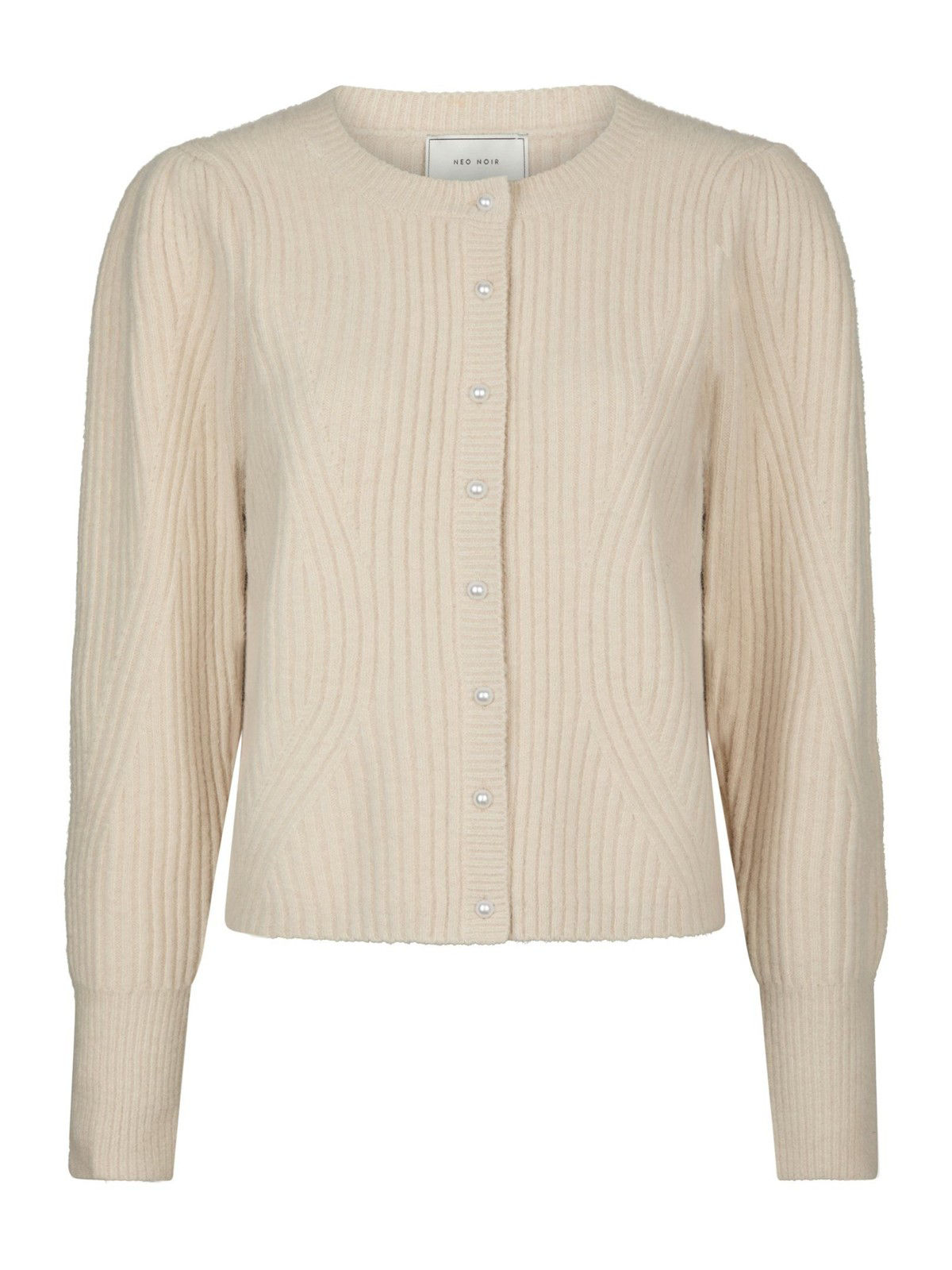 Sød, tætsiddende strik cardigan fra Neo Noir med lange ærmer, puff ærmer og en stribet struktur i garnet.