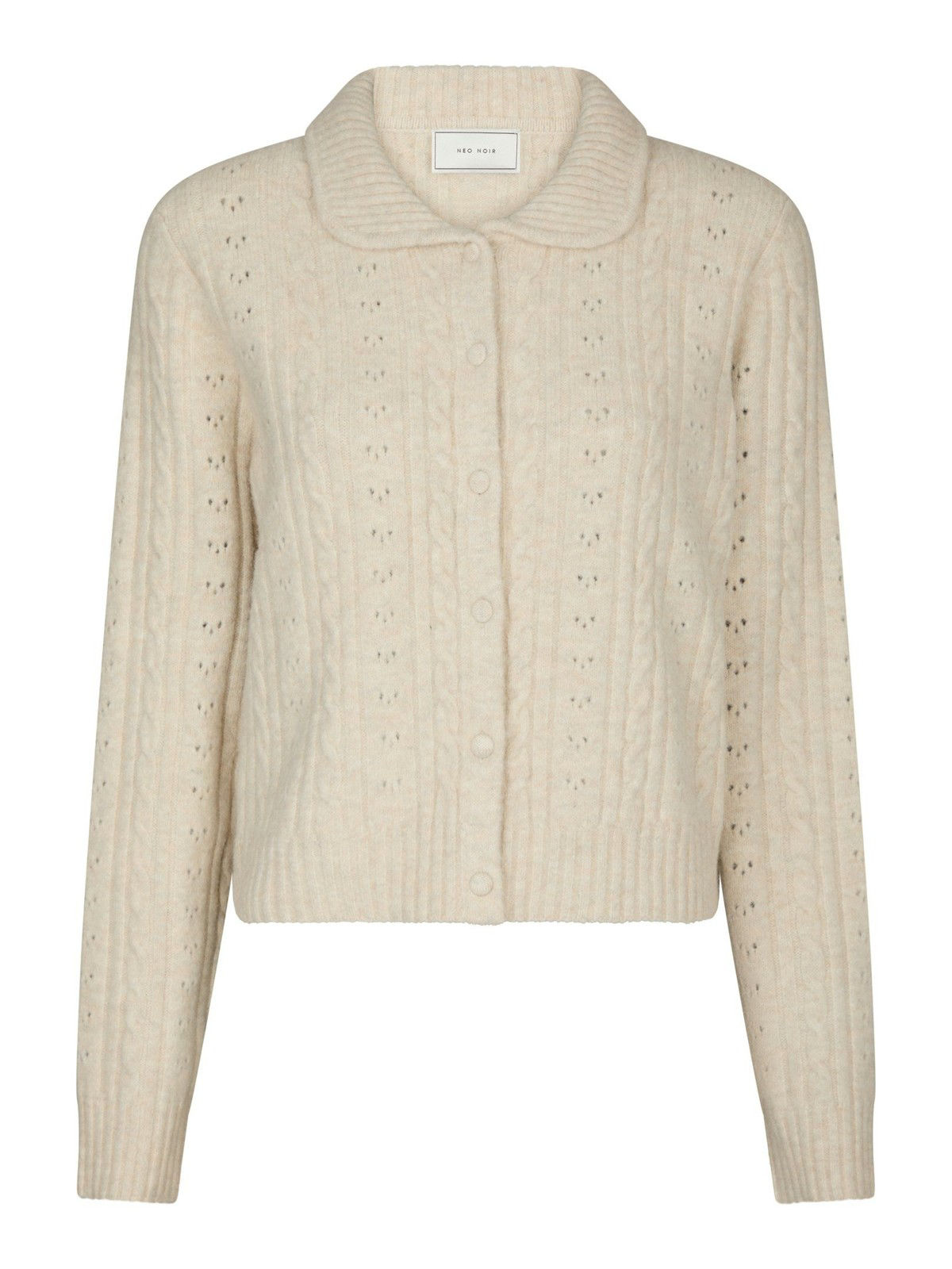 Skøn strikket cardigan fra Neo Noir med krave og knapper langs front. Cardiganen kommer med et fint strikket mønster.