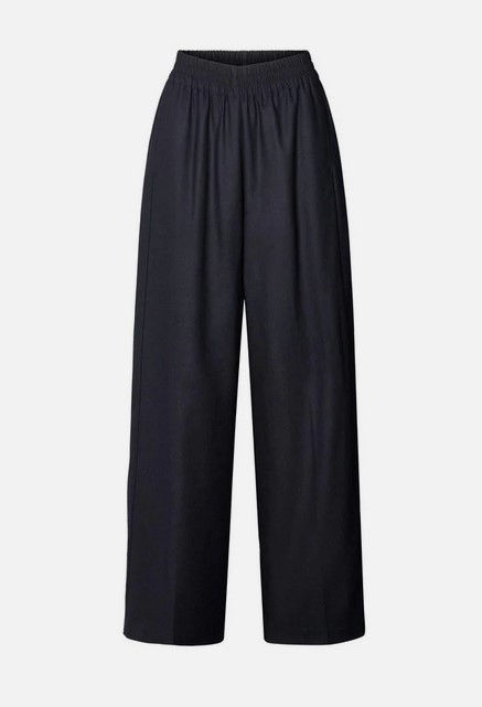 Pæne lange bukser er med et klassisk design fra Rabens Saloner. Det skræddersyede design er detaljeret med lange, vidde ben, diskrete sidelommer og en elastisk talje, der sikrer en god pasform. Den lette uldblanding er meget behagelig og holder dig lun de koldere dage.