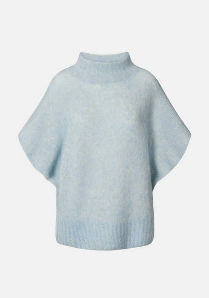 Flot og blød strik i en let og delikat uldblanding i den fineste blå farve fra Rabens Saloner. Den oversized pasform er designet med ribbede kanter, høj hals og korte ærmer, der tilfører et moderne touch til dit look. Brug den over en langærmet t-shirt for at holde dig både varm og komfortabel hele dagen.