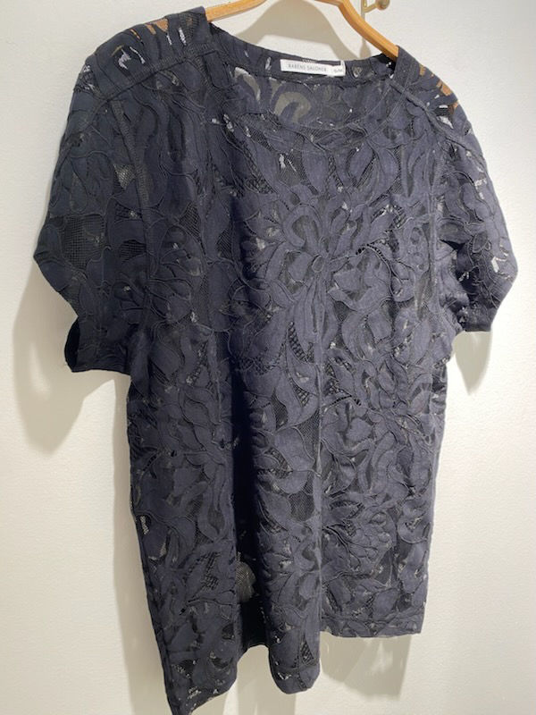Flot t-shirt fra Rabens Saloner med rund hals, fine femine blonder samt ærmer med albuelængde. Kan styles på mange måder både til festlige lejligheder og til hverdagens gode dage med et par jeans eller andre lækre bukser.