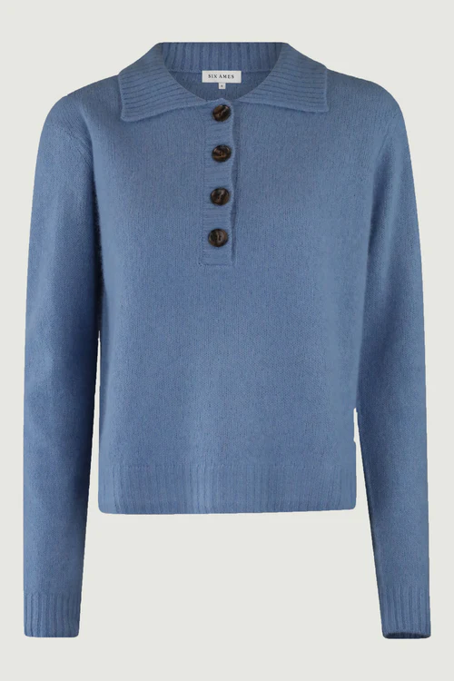 Denne superlækre bløde strik, er en af vores absolute favoritter. Strikken har en polokrave og knaplukning. Alle de strik vi har fra Six Ames er produceret af vaskebjørnshår, der gør strikken ultra blød og vamset - og virkelig behagelig at have på.