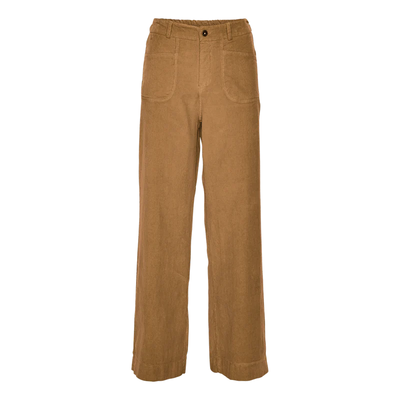 Lækre fløjlsbukser fra Amaze Cph med lange ben og forlommer. De er designet med en elastisk linning bagpå, som sikrer en behagelig pasform.