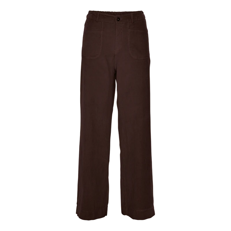 Lækre fløjlsbukser fra Amaze Cph med lange ben og forlommer. De er designet med en elastisk linning bagpå, som sikrer en behagelig pasform.