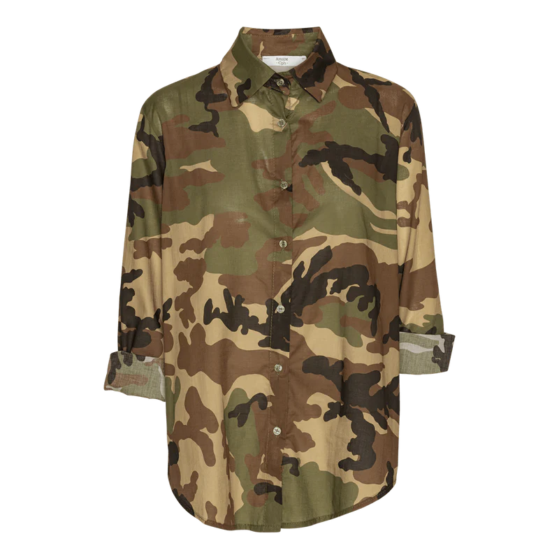 Skjorten er designet i en dejlig løs pasform med krave, skjult knaplukning og lange ærmer, som kan smøges op. Den er en smule længere bagtil.