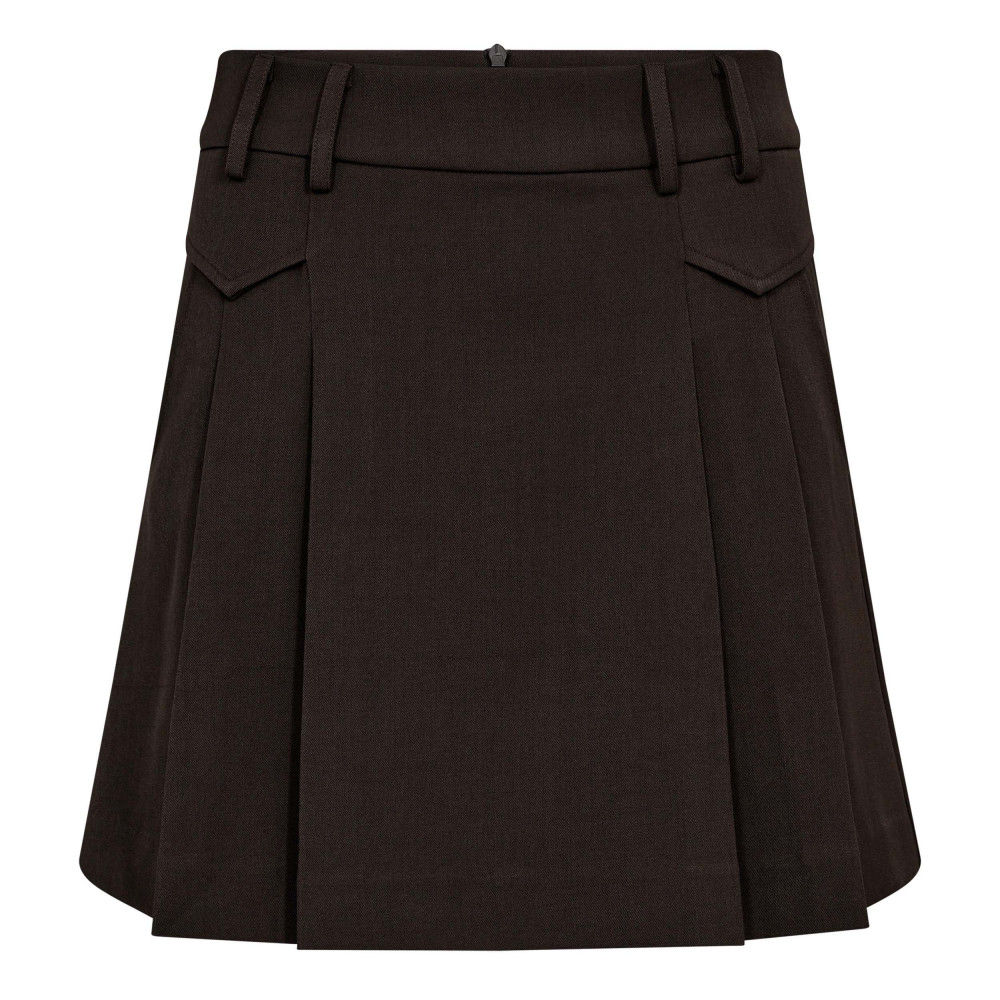 Klassisk og enkel nederdel fra Co' Couture med flotte detaljer over læggene samt skrå lommer foran. Nederdelen kan lukkes bagpå med lynlås og har en fast linning med stropper til et bælte.