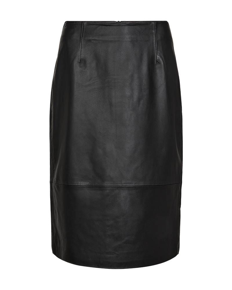 Elegant højtaljet pencilskirt fra CPH Muse i en eksklusiv læderkvalitet med fuld foring, skjult lynlåslukning, diskrete syninger samt en 30 cm slids bagpå.