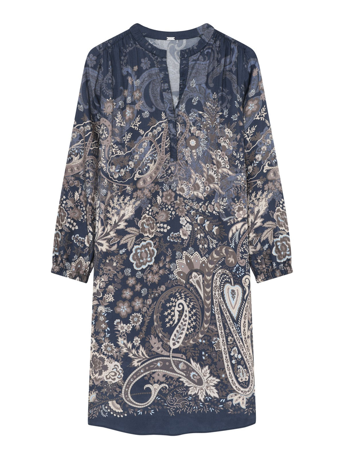 Pæn og elegant kjole fra Gustav med rundhals og v-udskæring, 3/4 ærmer og det fineste print.