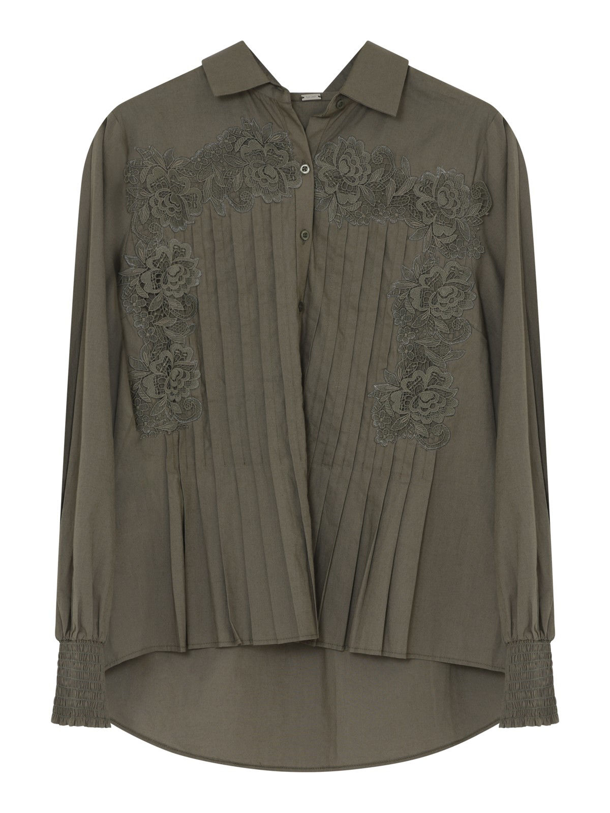 Fin skjorte fra Gustav med de flotteste blonder og plisserede detaljer. Skjorten har lange ærmer, en klassisk krave samt en smock for enden af ærmerne.