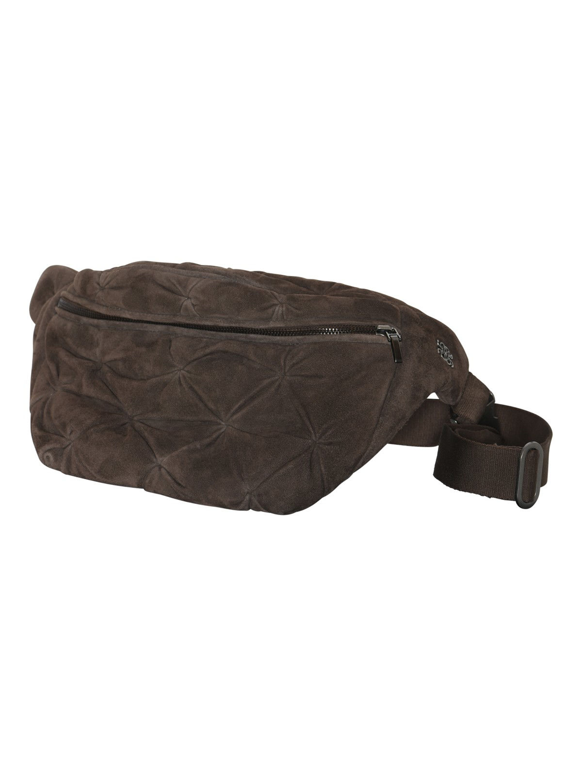 Skøn chokoladebrun bæltetaske fra Gustav, designet med en smuk struktureret overflade. Tasken har lynlåslukning og lang, kraftig justerbar strop.