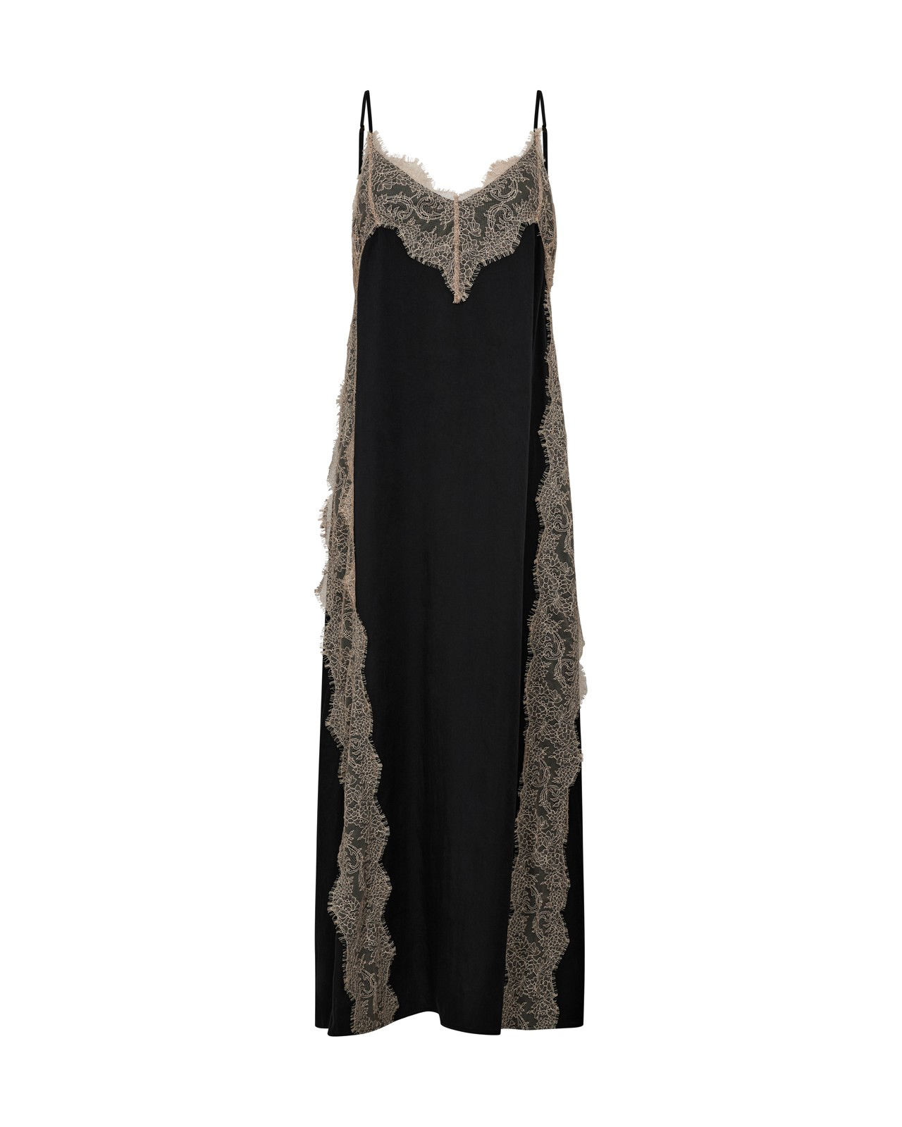 En smuk, lang kjole i blød Lyocell-blanding. Kjolen har elegante blonde-detaljer øverst og langs siderne, samt justerbare, tynde stropper, der giver et feminint og perfekt fit. Nem at style både til hverdag og fest – brug den med sandaler eller sneakers til et afslappet look, eller med hæle og en let jakke, når du vil gøre den mere festlig. Kig forbi butikken i Stenløse og prøv den, eller bestil den hjem med det samme og tilføj et elegant, alsidigt stykke til din garderobe.