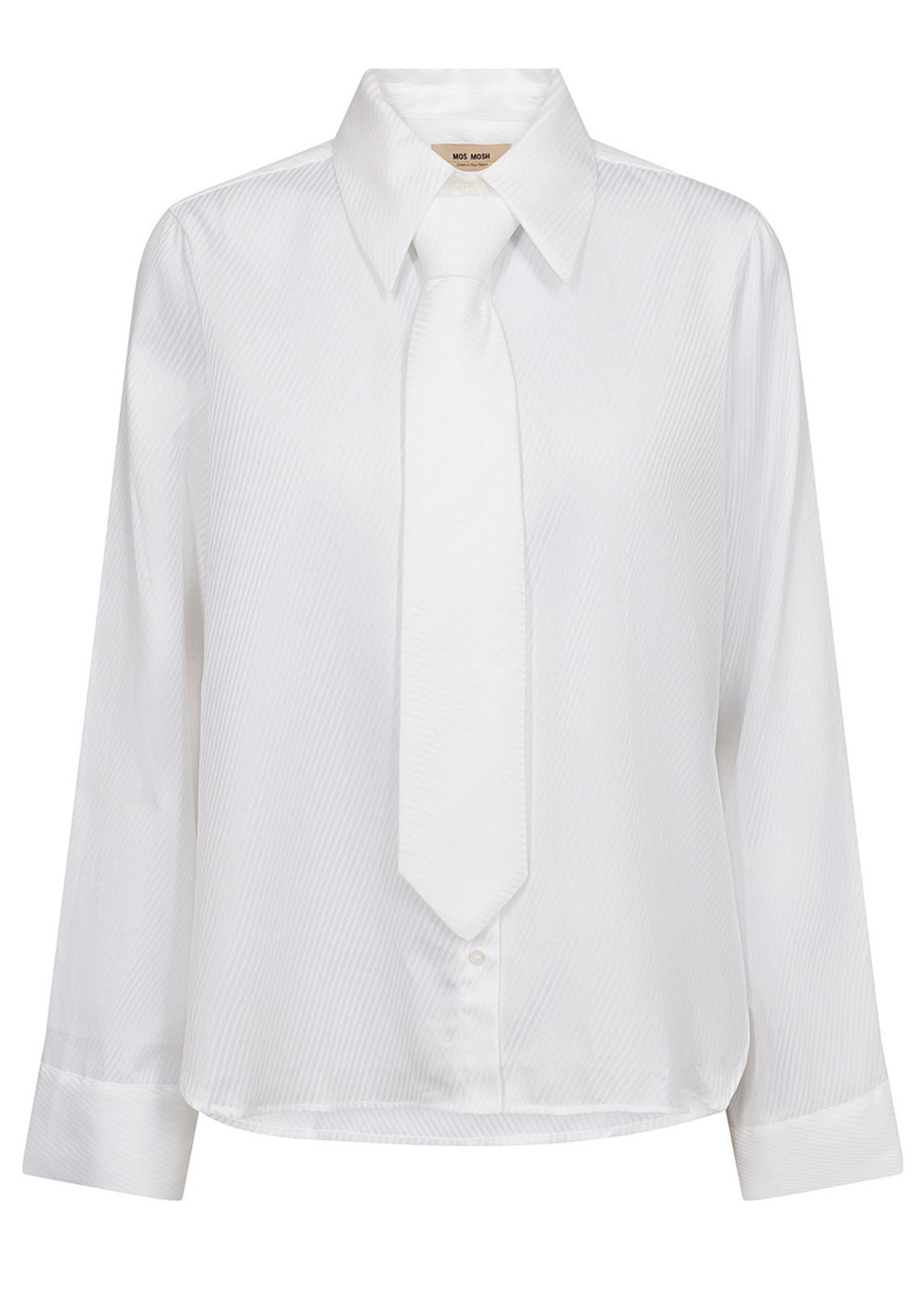 Elegant stribet skjorte fra Mos Mosh er skåret i en afslappet silhuet med klassisk krave og brede manchetter – og fuldendes af et aftageligt, matchende slips for et nyt bud på moderne femininitet. De tone-i-tone striber tilfører et diskret spil, der gør skjorten både elegant og ubesværet.