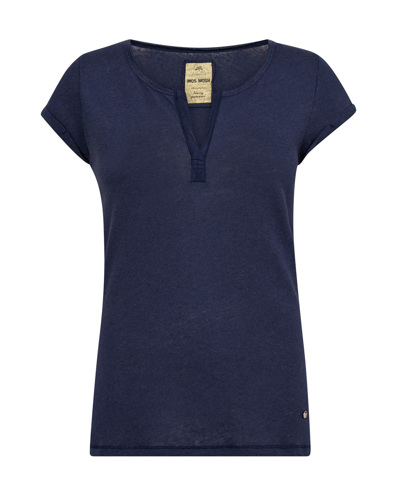 En dejlig blød T-shirt i navy med en dyb V-udskæring, der giver et feminint og afslappet look. Den enkle pasform gør den nem at style til både jeans og nederdele, og den bliver hurtigt en favorit i hverdagsgarderoben. Findes også i hvid.