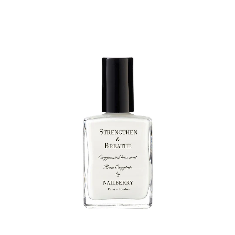 Boost kondition og styrke, mens du begrænser brud med Nailberrys dobbeltvirkende base coat og styrkende neglebehandling.