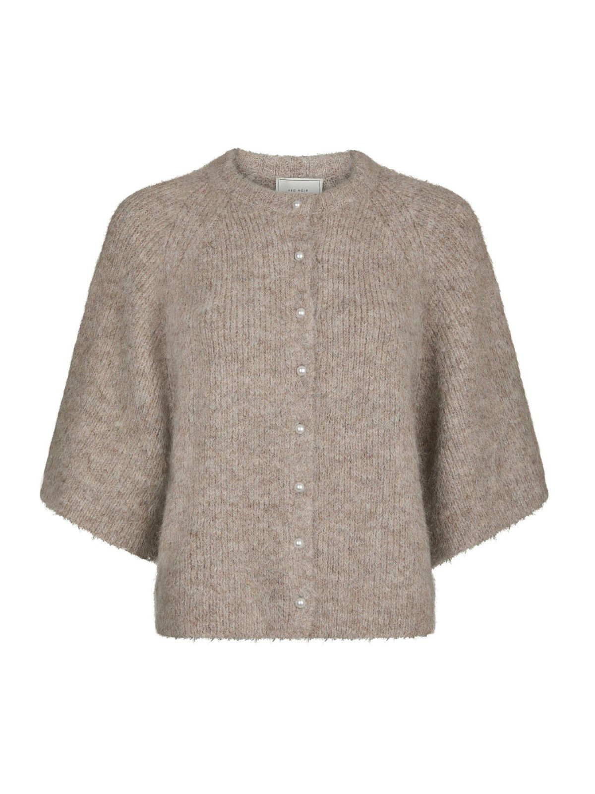 Boksformet strikket cardigan fra Neo Noir med brede ærmer og fine dekorknapper fortil. Kvaliteten er blød med et fluffy udseende.