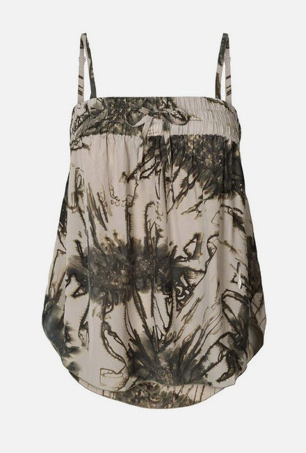 Toppen har en løstsiddende silhuet med en elastikkant øverst, der holder toppen på plads. Med aftagelige stropper, kan toppen styles på forskellige måder alt efter lejligheden.